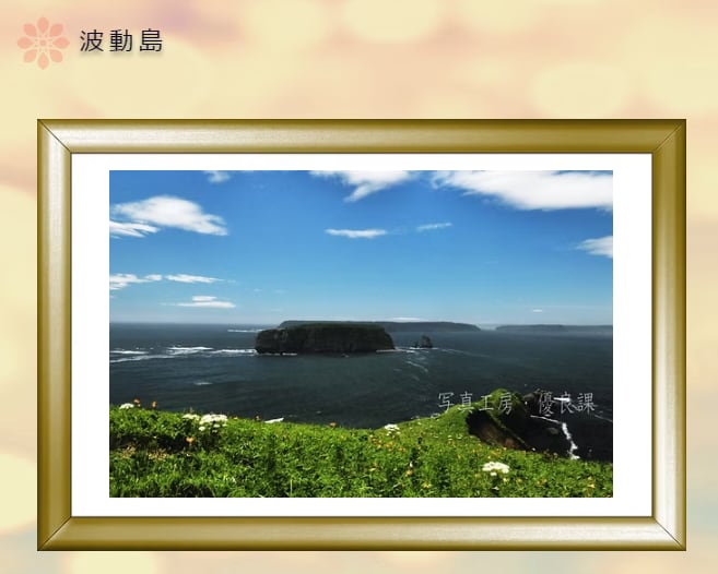 まさしくこの写真は小島を起点として画面いっぱいに飛び出すエネルギーの一瞬を写した作品です。雄大な風景の中に身を置き澄んだ空気の中で撮影した後には強い清々しさを感じました。それは小島からの波動を全身に受けていたので当然のことであったのでしょう。この小島からの波動を捉えた写真を飾り眺めていただき、より良い事が起こる事を願っています。また皆様の心の糧になればと思っています。