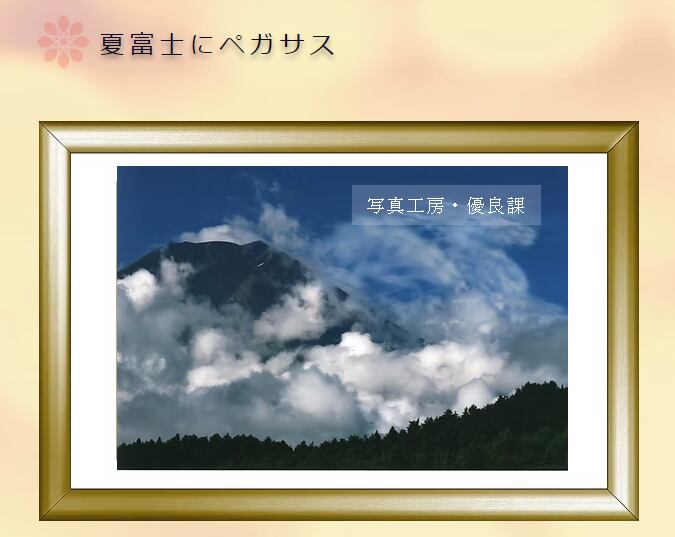朝には久しぶりと言えるほどの爽やかな夏空でしたが、目的の富士山は湧き立つ雲に包まれ続けていました。撮影を諦めて撤収の準備をしていた時、富士山の後ろから、羽を持つ馬のような雲が現れました。
