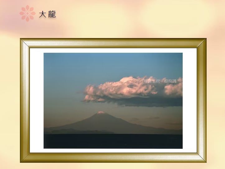 特に今回の龍は、その大きさから特別な力を持つ龍と考えられますので、「霊峰富士」と「特別な龍」を一枚に収めた大変稀なこの作品が、皆様の心の充実に寄与できれば嬉しく思います。