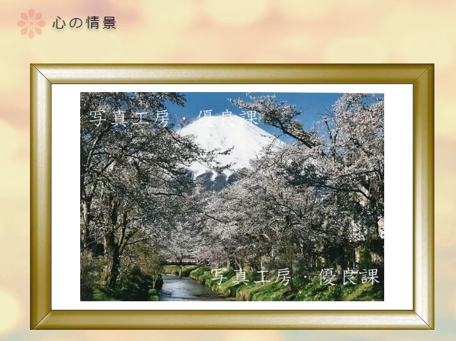 富士山を画面の奥に置き、満開の桜で囲った構図としました。