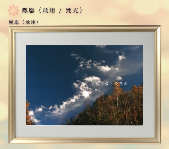 鳳凰の光り輝く姿を写したカットは写真から出る波動で鳳凰のパワーを得られるとして求められていく写真となっています。
